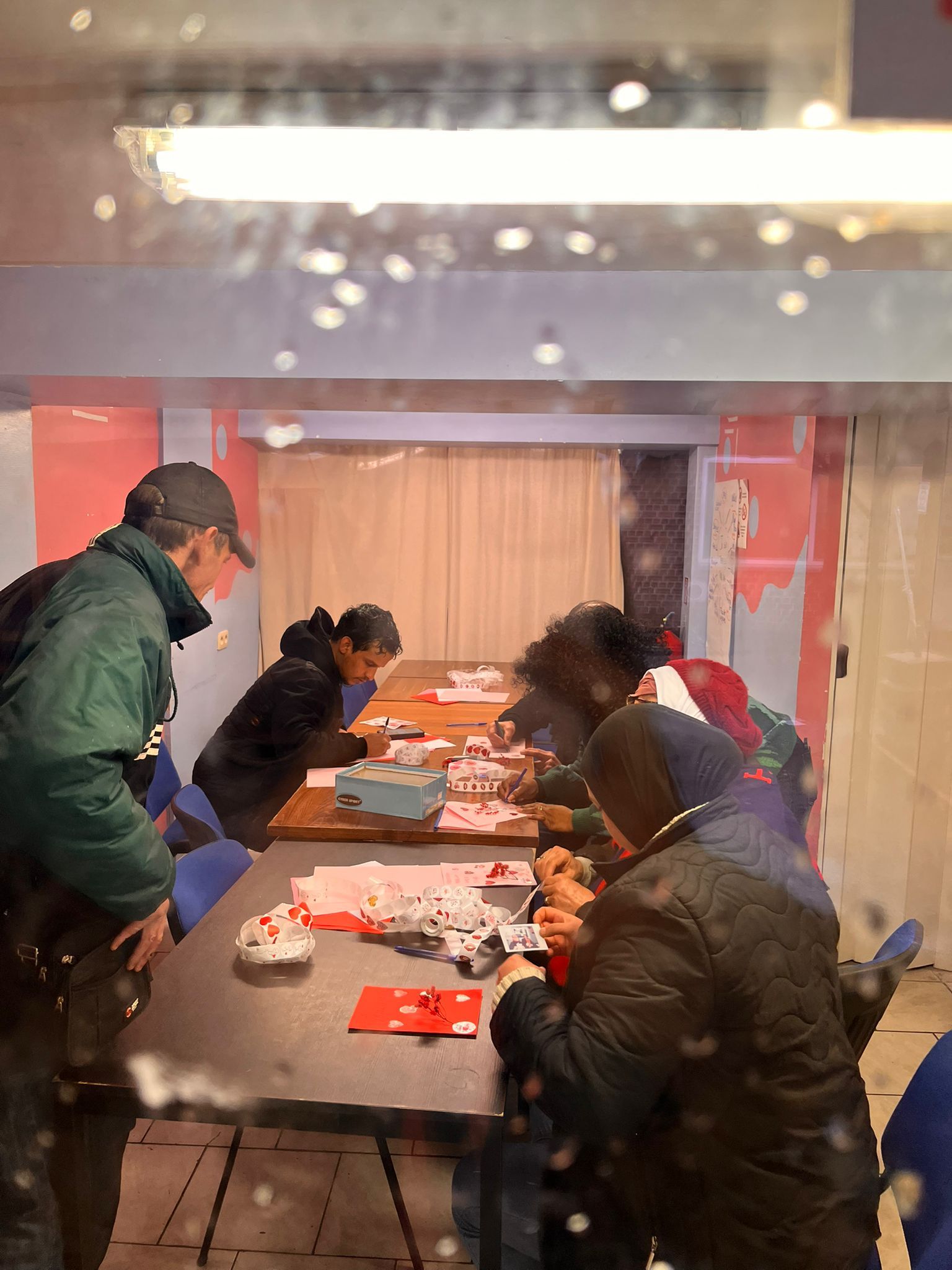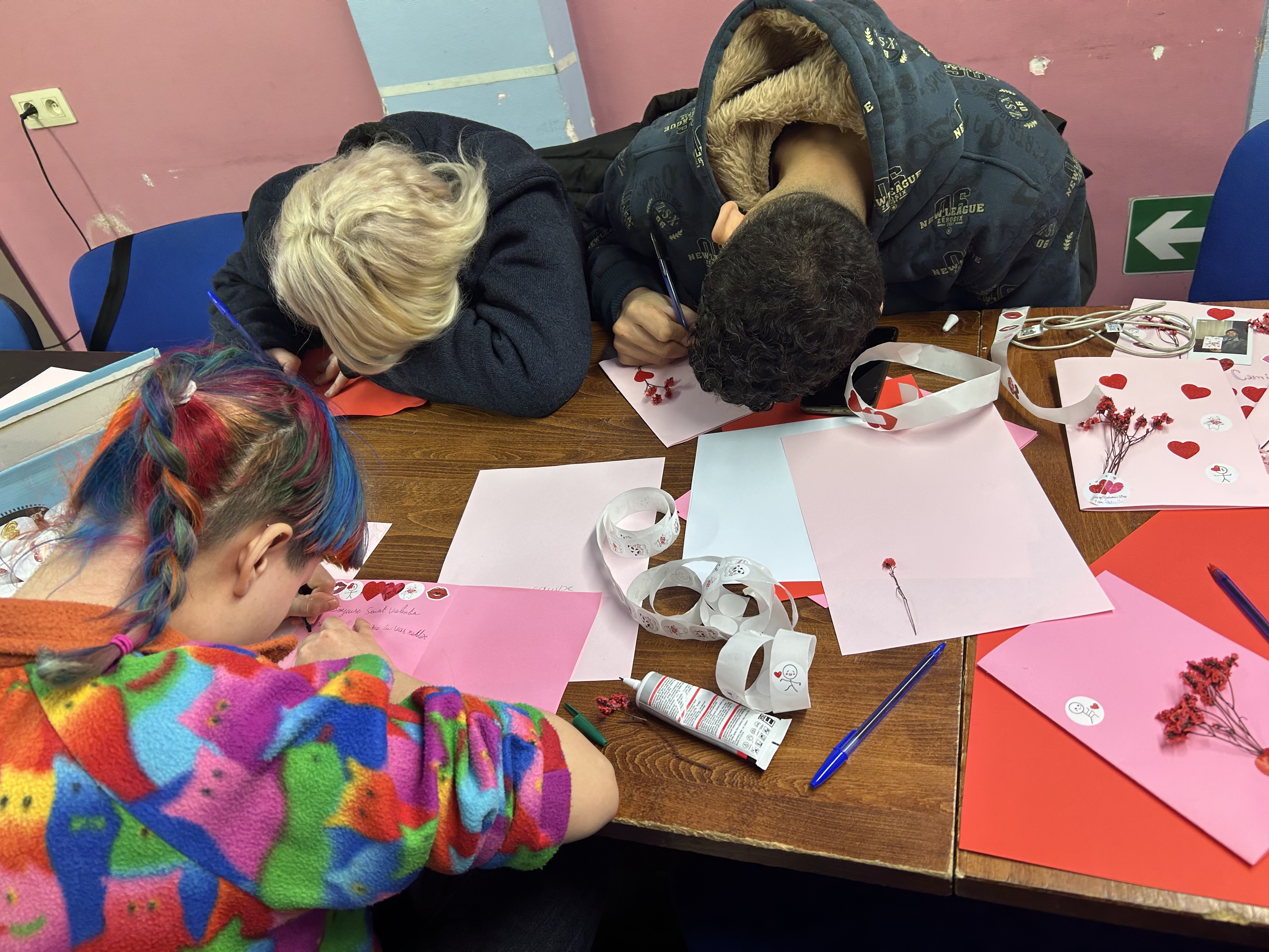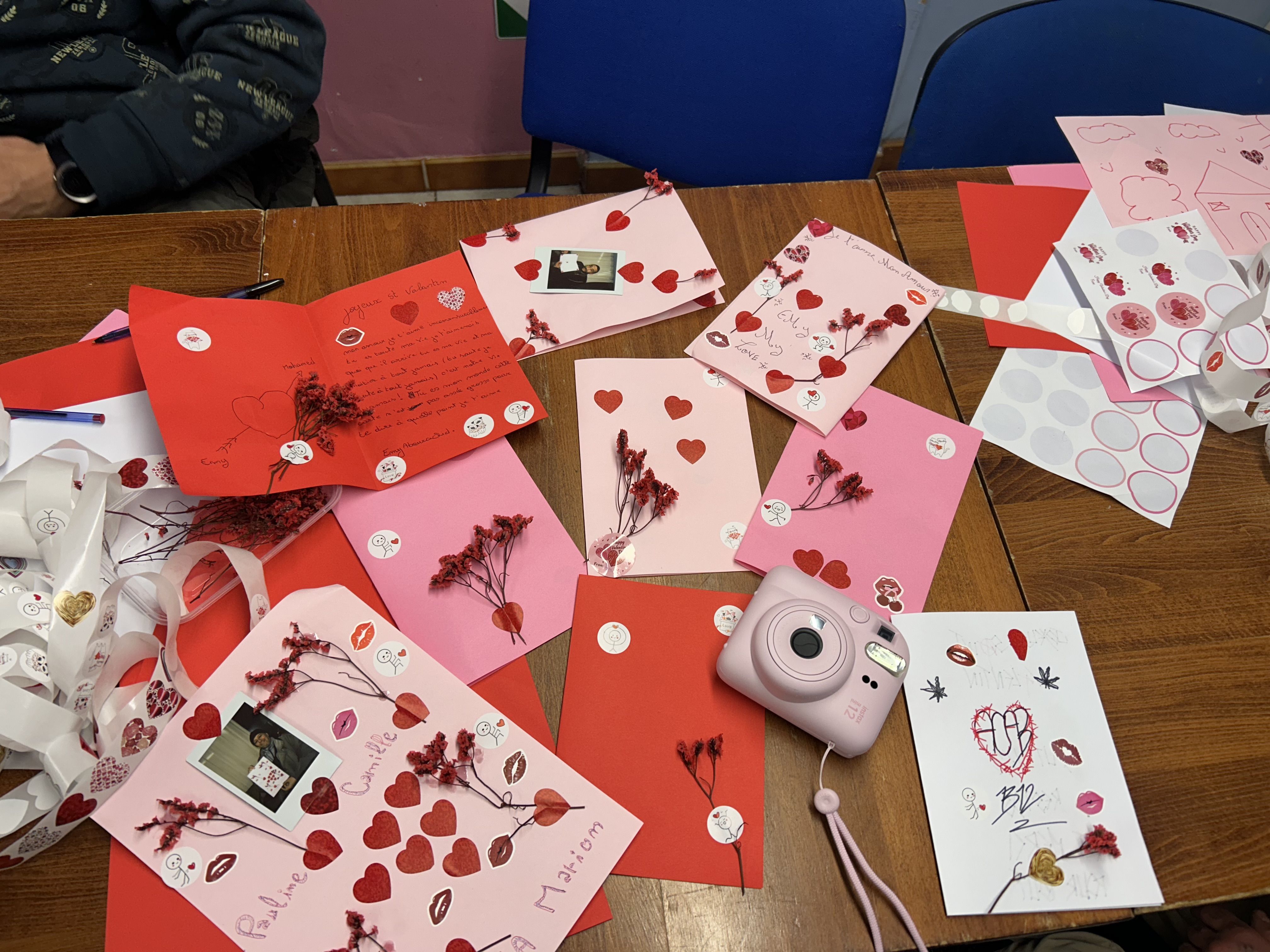 Pendant son stage d'assistante sociale, Patricia a organisé jeudi dernier une activité pour nos bénéficiaires : réaliser des cartes pour la Saint-Valentin.