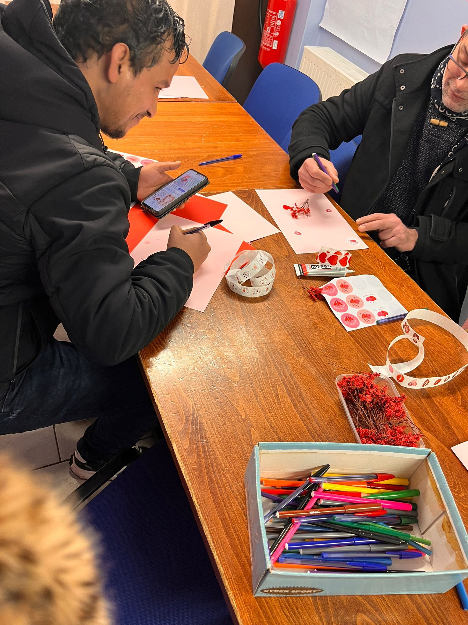 Pendant son stage d'assistante sociale, Patricia a organisé jeudi dernier une activité pour nos bénéficiaires : réaliser des cartes pour la Saint-Valentin.
